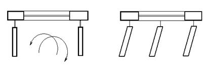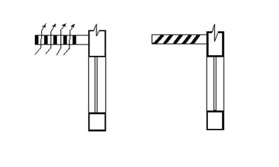 Рис.5. горизонтальні сонцезахисні пристрої з вертикальним та похилим розташуванням рейок козирка.