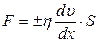 де S – площа взаємодії шарів рідини, що рухаються,