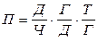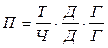 де Д / Ч - середня кількість відпрацьованих одним робітником днів у звітному періоді (д), Г/Д - середня тривалість робочого дня (зміни) в годинах (г), нарешті, Т/Г - - середньогодинний виробіток одного робітника (п).