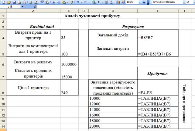 Приклад виконання практичного завдання «Аналіз чутливості фінансових показників в середовищі пакета Microsoft Excel»