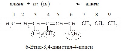 Номенклатура. Алкени– це вуглеводні, в яких міститься один подвійний ненасичений зв’язок