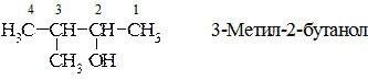 4. За систематичною (IUPAC) номенклатурою назва спирту утворюється від назви відповідного алкану додаванням до неї закінчення - ол з позначенням номера атома Карбону, біля якого вона розміщена, причому останній обов’язково повинен бути у складі основного ланцюга, а нумерація карбонового ланцюга починається з того кінця, до якого ближче розміщена функціональна група −ОН. Наприклад: