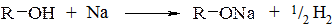 12.6. Хімічні властивості спиртів Спирти вступають у реакції двох основних напрямків: 1. З розривом зв’язку О−Н. 2. З розривом зв’язку С−О. Реакції з розривом зв’язку О−Н характеризують кислотні властивості спиртів. В гідроксильній групі електронна густина зміщена до більш електронегативного атома Оксигену. Поляризація зв’язку О−Н полегшує відщеплення атома Гідрогену у вигляді протона, тобто призводить до виявлення спиртами кислотних властивостей. Цей атом Гідрогену здатний замінюватись на атом металу (М) при взаємодії з лужними металами: