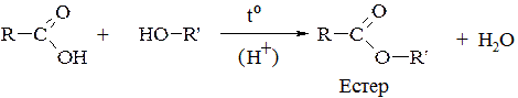 3. Естерифікація – утворення складних ефірів (естерів) при взаємодії спиртів з органічними кислотами: