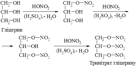 13.2. Окремі представники 1,2−Етандіол (етиленгліколь) – безбарвна густа і дуже токсична рідина без запаху, що застосовується як пластифікатор у виробництві синтетичних волокон (лавсан); для добування діоксану – важливого лабораторного розчинника. Крім того, його застосовують як антифриз для охолодження автомобільних двигунів. Діетиленгліколь, триетиленгліколь та інші поліетиленгліколі застосовуються в харчовій, фармацевтичній промисловості та у виробництві косметичних засобів як зволожувачі та емульгатори. Гліцерин – густа сиропоподібна рідина, солодка на смак. Гліцерин широко використовується в парфумерії, харчовій промисловості, для отримання вибухівки (тринітрату гліцерину), в шкірообробній та паперовій промисловості; для синтезу алкідних та епоксидних смол тощо. [1], c. 247-256; [2], c. 329-339.