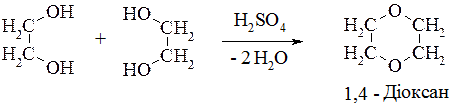 2. Дегідратація етиленгліколю за Фаворським приводить до утворення циклічного етеру − діоксану: