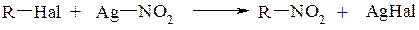 Аци- нітроформа утворена при підкисленні розчину, її солі швидко ізомеризується в нітроформу. Таким чином, аліфатичні нітросполуки є псевдокислотами, оскільки вони самі нейтральні, не мають електропровідності, однак утворюють солі лужних металів. 2. Дія нітритної кислоти є характерною (якісною) реакцією, за якою можна розрізнити первинні, вторинні, третинні нітросполуки. Вона також зумовлена рухливістю атомів Гідрогену в α-положенні до нітрогрупи. Первинні нітросполуки з нітритною кислотою утворюють нітролові кислоти, лужні солі яких забарвлені в червоний колір: