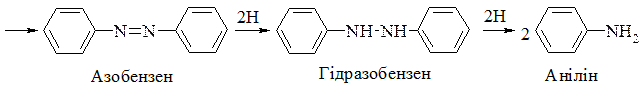 4. Відновлення нітросполук зумовлює утворення первинних амінів. Особливе значення має відновлення ароматичних нітросполук, під час якого синтезуються у промисловому масштабі важливі нітрогеновмісні ароматичні сполуки. Залежно від типу відновника і відповідних умов реакції можна добути різні продукти відновлення. У нейтральному або кислому середовищі реакція відбувається за схемою: