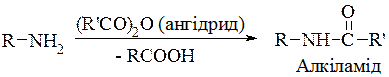 3 Алкілювання амінів (реакція Гофмана розглядалася раніше). 4. Ацилювання аміногрупи можливе для первинних і вторинних амінів: