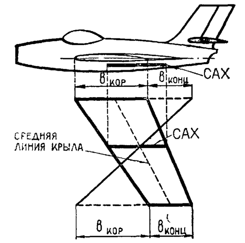 Зная величину и положение САХ на самолете и приняв ее как базовую линию, определяют относительно нее положение центра тяжести самолета, центра давления крыла и т. д. Аэродинамическая сила самолета создается крылом и приложена в центре давления. Центр давления и центр тяжести, как правило, не совпадают и поэтому образуется момент сил. Величина этого момента зависит от величины силы и расстояния между ЦТ и центром давления, положение которых определяется как расстояние от начала САХ, выраженное в линейных величинах или в процентах длины САХ.