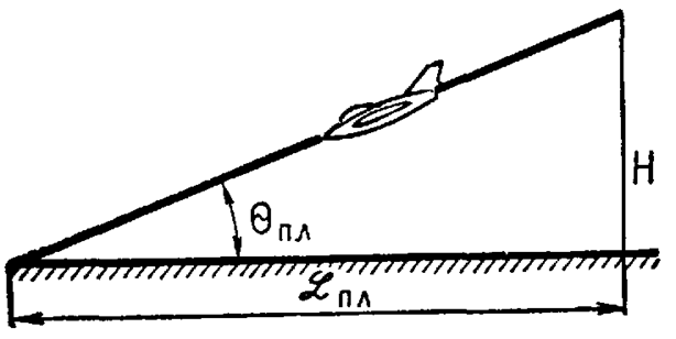 Расстояние, проходимое самолетом (планером) относительно земли за время планирования с данной высоты, называется дальностью планирования. Она является одной из важнейших характеристик самолета и особенно планера. Найдем, какое расстояние пролетит самолет с высоты Н, если угол планирования его равен Из рис. 12 видно, что Lпл - это расстояние, проходимое самолетом относительно земли, которое называется дальностью планирования. Из рис. 12 определим
