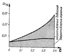 При расширении струек, обтекающих хвостовую часть профиля крыла, происходят местные отрывы пограничного слоя. В результате этого давление в хвостовой части полностью не восстанавливается, там образуется спутная струя и зона разрежения. Профиль испытывает действие не только сил трения, но и разности давления перед телом и за ним (см. рис.3.15-1,б). Таким образом, профильное сопротивление складывается из сопротивления трения и давления: Сопротивление давления – это сила разности давлений перед и за крылом. На рис. 3.16 показано влияние формы профиля, его относительной толщины и кривизны на профильное сопротивление.