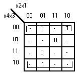 По карте Карно получаем результат: f = x4x3' + x4'x3(x1 + x2)
