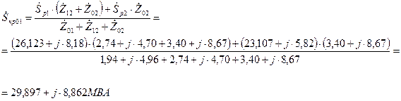 Потоки мощности на головных участках сети, т.е. участках, примыкающих к источнику питания, определяем по правилу электрических моментов, однако расчет ведем по полным сопротивлениям участков сети: