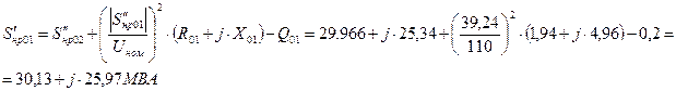 Поток мощности для промежуточного участка сети определим по первому закону Кирхгофа: