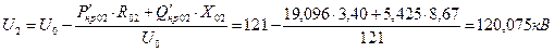 Определяем напряжение в узлах сети: Расчет напряжений в узлах сети начинаем с того узла, в котором известна величина напряжения, это напряжение источника питания.