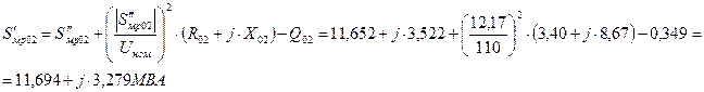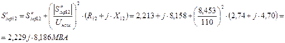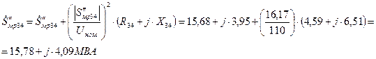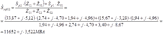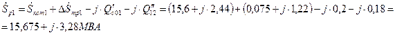 Поток мощности для промежуточного участка сети определим по первому закону Кирхгофа: