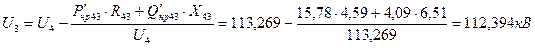 Расчет напряжений в узлах сети начинаем с того узла, в котором известна величина напряжения, это напряжение источника питания.