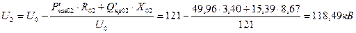 Определяем напряжение в узлах сети: Расчет напряжений в узлах сети начинаем с того узла, в котором известна величина напряжения, это напряжение источника питания.