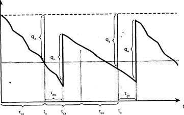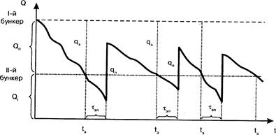Рис. 8. График пополнения и расходования запаса в двухбункерной системе с постоянным размером заказа