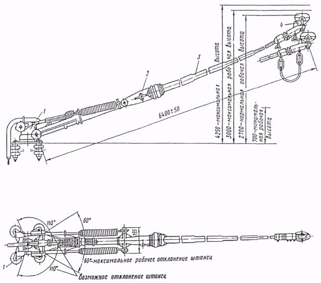 Рис.12. Токоприемник 1. Основание 2. Штангодержатель с пружиной 3. Штанга 4. Контактная головка