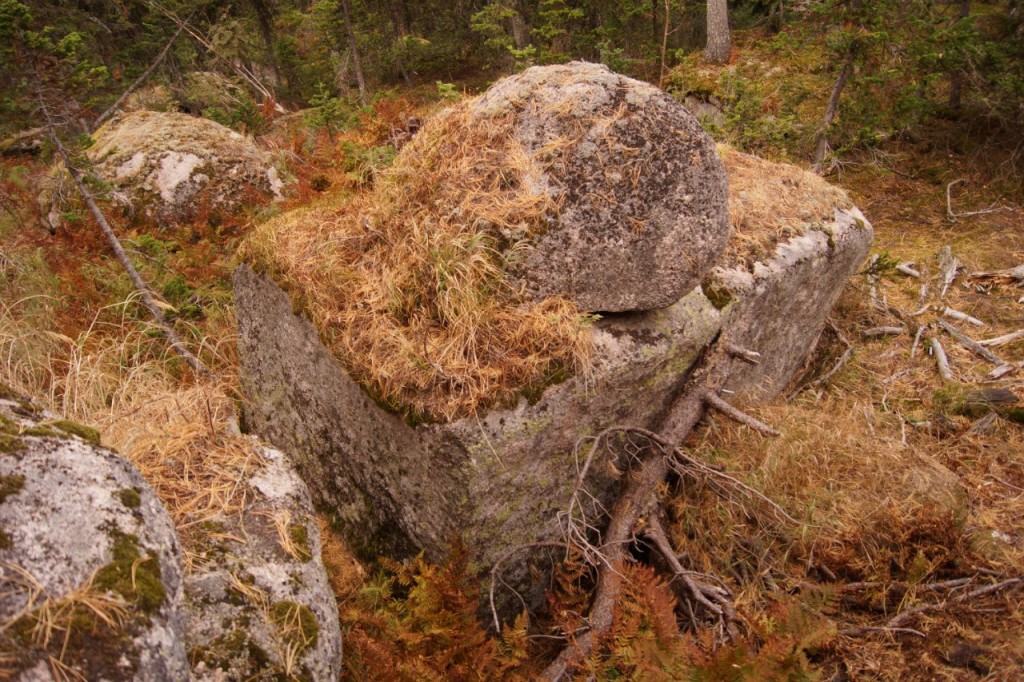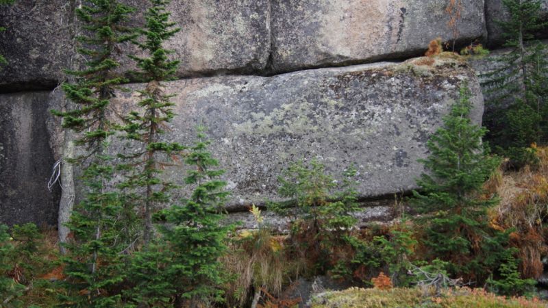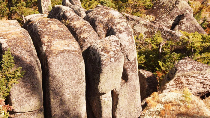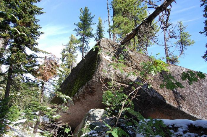 посёлок Камушки (Сибирь, Алатау). блоки неприродного происхождения. Их длина достигает 20 метров, а высота 6 метров. Вершины мегалитических сооружений имеют следы древнего оплавления. Это даёт возможность предположить, что сооружения были разбросаны каким-то мощным термоядерным врзывом.