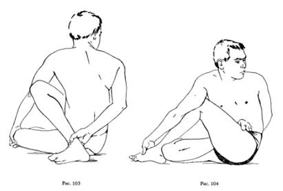 Рис. 101, 102. АРДХА МАТСИЕНДРАСАНА (скручивание позвоночника), разновидность 1.