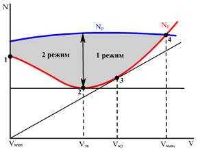 Кривые потребной и располагаемой мощностей впервые были предложены Н.Е. Жуковским для определения летных характеристик летательных аппаратов, и в аэродинамике носят его имя (рис.2.3.)