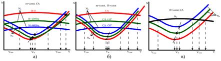 Метод одновременного рассмотрения изменения потребной и располагаемой мощностей в зависимости от различных эксплуатационных факторов позволяет раскрыть физическую сущность причин изменения возможных условий горизонтального полета, выявить его наиболее характерные скорости и режимы. На рис.2.3. можно видеть следующие характерные точки: - точка 1- - точка 2- точка минимальной - точка 3- определяет - точка 4- точка пересечения Изменение располагаемой и потребной мощностей в зависимости от высоты, температуры наружного воздуха и полетной массы вертолета определяет изменение перечисленных скоростей горизонтального полета.