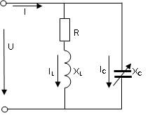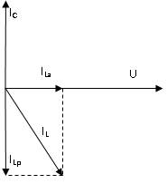 Построим векторную диаграмму. Для того, чтобы ток I в неразветвленной части цепи совпадал по фазе с напряжением, реактивная составляющая тока индуктивной ветви ILp должна быть равна по модулю току ёмкостной ветви IC. Активная составляющая тока индуктивной ветви ILа оказывается равной току источника I.