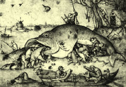 На деле же нагрузка на атмосферу создается практически полностью самим "первым миром". Вклад Индии в "парниковый эффект" составляет 1/50 от США. 2 процента! Кого же следовало бы "поубавить", чтобы спасти планету? Фактор влияния человеческой деятельности на природу сильно преувеличен желающими погреть руки на экологических программах. Один вулкан извергает больше окиси углерода и серы со стронцием и полонием, чем все автомобили и паровозы за столетие. Уместно вспомнить, что в викторианской Англии проблему промышленных отходов создавал конский навоз. В Лондоне даже процветали целые акционерные общества, занятые его захоронением, пока в Первую Мировую лошадей не съели автомобили. На снимке: Питер Брейгель Старший. Большие рыбы едят маленьких рыб. Рисунок. 1556 <> <> <> Серьезные словесные баталии разгораются вокруг "трудных случаев" - в частности, абортов по медицинским показаниям, которые составляют примерно 1% от общего числа абортов. Современная медицина позволяет в такой степени обезопасить женщину, что скорее можно говорить об исключительных, чрезвычайно редких случаях смерти при родах, обычно сопровождающихся и гибелью плода. Почему же женщину направляют на аборт? Причина в желании врача застраховаться и улучшить статистику в ситуациях повышенного риска, ведь за смертность от абортов, какой бы высокой она ни была, он не отвечает, тогда, как даже за единичный случай смерти роженицы ему грозят большие неприятности. Но подобная логика перестраховки совершенно не учитывает, что аборты часто приводят к летальному исходу. Причем, женщина может умереть не только сразу после прерывания беременности, есть и его отдаленные последствия, также влекущие за собой гибель: постабортный синдром, сопровождающийся попытками самоубийства; различные женские заболевания, особенно онкологические, - так, через несколько лет после аборта возможна смерть от рака молочной железы. Нельзя признать нормальным положение, когда юридическая ответственность врача за смерть матери несопоставимо более высока, чем ответственность за погубление плода, что провоцирует медиков, а через них и пациентов на совершение аборта. <> <> <> Крошечная рука ребенка тянется из материнской утробы, чтобы схватить исцеляющий палец хирурга. На фото показан 21 недельный плод в материнской утробе, во время операции, проводимой для спасения ребенка от серьезного заболевания спинного мозга (к слову, на этом сроке беременности 21 недельный ребенок может быть законно абортирован). Операция была проведена через небольшое отверстие в стенке матки, видимое на фото. «Пациент», очевидно, был самым молодым из перенесших подобную операцию. Самуил родился в четверг 2 декабря в 6:45. Он родился на 36 неделе. Ему даже не пришлось лежать в послеродовом отделении, уже в понедельник 6 декабря он был выписан домой.