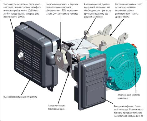 К сожалению, дальнейшее повышение КПД бензинового двигателя за счет увеличения степени сжатия не целесообразно – это потребует значительного увеличения октанового числа топлива (а значит, и его стоимости). В противном случае горючая смесь, детонировав, будет сгорать раньше времени, толкая поршень против его движения. Для следующего качественного шага необходимо кардинально улучшить сам процесс смесеобразования, то есть отказаться от карбюратора в пользу систем впрыска с электронным управлением. А цена самой простой из них вплотную приближается к стоимости недорогого мотора вместе с его карбюратором. Дизельные моторы Дизель обладает недостижимо низким для бензинового мотора расходом топлива. У него степень сжатия ограничена, главным образом, прочностью и термостойкостью деталей поршневой и кривошипной-шатунной группы. Для нормальной работы в жестких режимах их приходиться делать очень