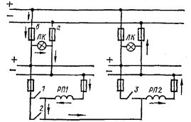 Автоматизация управления производственными процессами, повышение мощности отдельных энергетических объектов, связанные с этим усложнение схем вторичных соединений и повышение ответственности работы цепей управления и сигнализации требуют особого внимания к построению и выполнению схем вторичных соединений. Первым и непременным требованием следует считать четкость построения схем, позволяющую быстро ориентироваться в них и обнаруживать неполадки или ложную работу цепей. Вторым требованием является обеспечение исправной работы вторичных цепей каждого присоединения, возможность проверки состояния оперативной цепи в пределах одного энергетического устройства любой ячейки РУ. Такая проверка легко осуществляется с помощью индивидуальных, на каждое присоединение (или на систему вторичных соединений комплексного устройства) защитных устройств [55] (предохранителей или лучше автоматических выключателей со вспомогательными контактами для сигнализации об их срабатывании). Защитные устройства, конечно, должны выбираться с учетом избирательности действия их в схеме. Учитывая чрезвычайную разветвленность цепей вторичных соединений и значительную в связи с этим вероятность ненормальных состояний в сети вторичных соединений, целесообразно [53] у крупных присоединений отделять цепи управления от прочих цепей (сигнализации, блокировки и др.). Третьим, не менее важным является требование не допускать ложных (обходных) цепей. Под ложной цепью понимается не предусмотренная при проектировании цепь, возникновение которой может повести к ложному действию схемы. Такие ложные цепи могут возникать при отсутствии в схемах необходимых разделительных и множительных реле, при нечетком разделении цепей управления и сигнализации, при недоучете случайных заземлений или разрывов цепи в той или иной части схемы. Указанное особенно важно для цепей управления: работа включающих или отключающих катушек, электромагнитов должна иметь место только тогда, когда замкнуты оперативные контакты преобразователя, приводящего в действие механизм выключателя. При построении и проверке развернутых схем следует обратить внимание на так называемые поперечные цепочки, в большинстве случаев и создающие ложные цепи. Рис. b-2. Схемы защиты трансформатора: с — неправильная; б, в — правильные РД — дифференциальное реле; РМ — максимальное реле; РП — разделительное промежуточное реле; КО — катушки отключения В качестве примера можно привести следующие простейшие случаи. А. Первый пример — схема защиты трансформатора, в которой имеется дифференциальная и газовая защиты, реагирующие на отключение трансформатора с двух сторон, и максимальная токовая защита, которая должна производить отключение трансформатора только с одной стороны (рис. 8-2). При составлении принципиальной схемы релейной защиты в свернутом виде может быть не обнаружена электрическая связь цепей отключения двух выключателей. Из развернутой схемы (рис. 8-2) следует, что при такой связи (поперечная цепь) неизбежна ложная цепь. Необходимы два оперативных контакта у защитных реле, действующие на два выключателя или разделительное промежуточное реле. Б. Неразделенные цепи низшего и высшего напряжения трансформатора. Из рис. 8-3, б ясна невозможность независимого отключения одной из сторон