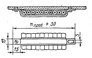 Электропроводка вторичных цепей должна удовлетворять требованиям ПУЭ и ПТЭ. Так, учитываются особая ответственность цепей защиты и управления, надежность контактных соединений, механическая прочность присоединений [55], термическая стой-» кость проводов к току к. з. и, наконец, техника безопасности обслуживания вторичных цепей. Очень важным является требование герметизации и уплотнений при проходе через перекрытия, особенно в подпультовое помещение и каналы. По условиям техники безопасности и изоляции рабочее напряжение вторичных цепей [55] должно быть не выше 440 В при постоянном и 400 В при переменном токе. Обычно исходя из условий изоляции и конструкции контактных зажимов принимается рабочее напряжение вторичных цепей постоянного тока 220 В, то же в большинстве случаев и на переменном токе, т. е. в сети питания 380 В с заземленной нейтралью для вторичных цепей используется фазное напряжение. При прокладке проводов и кабелей следует, конечно, учитывать условия окружающей среды: влагостойкость, светостойкость, коррозионную стойкость проводов, кабельных оболочек, неизменяемость переходных сопротивлений контактных соединений, которая особенно важна при алюминиевых проводах и жилах кабелей. Разрешая применение для вторичных цепей контрольных кабелей с алюминиевыми жилами из мягкого отожженного алюминия, Правила устройства электроустановок делают исключение: а) для основного и вспомогательного оборудования ТЭС и ТЭС с генераторами 100 МВт и выше; б) для подстанций с высшим напряжением 220 кВ и выше; в) для взрывоопасных помещений классов В.1 и В1-а; г) для проводов с рабочим напряжением не выше 60 В при диаметре жил кабелей и проводов от 0,5 до 1 мм. Для вторичных соединений могут применяться кабели всех типов, указанные в заводских каталогах; небронированные кабели должны иметь свинцовую, алюминиевую, резиновую или полихлорвиниловую оболочку; применение кабелей с полиэтиленовой оболочкой ввиду ее пожароопасности запрещается. Если применяются контрольные кабели с полиэтиленовой изоляцией жил, то при их разделке на каждую жилу поверх изоляции должна быть надета полихлорвиниловая трубка. Учитывая недостаточную термическую стойкость кабелей с резиновой и полиэтиленовой изоляцией жил, разрешается применение их лишь при температуре окружающей среды не выше 50 °С и при длительной температуре жил кабеля не выше 65 °С. Контрольные кабели в основном изготавливаются многожильными (с жилами одного или двух различных сечений). По условиям механической прочности присоединения к зажимам панелей и аппаратов алюминиевые жилы кабелей и проводов должны иметь сечение не менее 2,5 мм2, медные — не менее 1,5 мм2, и только для неответственных установок (на промышленных предприятиях) разрешается уменьшение сечения медных жил кабелей до 1 мм2. В цепях напряжением до 60 В диаметр медных жил кабелей, присоединяемых пайкой, должен быть не менее 0,5 мм. Особое внимание при выборе сечения следует уделить требованию работы аппаратов и измерительных приборов в заданном классе точности. Трансформаторы тока должны работать в классе точности, определяемом классом точности расчетных счетчиков и щитовых приборов, в схемах защиты — в пределах 10 %-ной погрешности. Рис. 8-42. Пакетная прокладка проводов I — стойка; 2 — электрокартон; 3 — скоба Рис. 8-41. Плоская прокладка 
