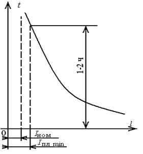 Процесс отключения состоит из нагревания вставки до температуры плавления и испарения вставки, возникновения электрической дуги и ее гашения с восстановлением изоляционных свойств промежутка, В большинстве предохранителей отключение цепи происходит за счет расплавления плавкой вставки, которая нагревается протекающим через нее током защищаемой цепи. После отключения цепи необходимо заменить перегоревшую вставку на исправную. Эта операция производится вручную или автоматически заменой всего предохранителя. Предохранители характеризуются следующими показателями. Номинальным током плавкой вставки, т. е. током, на который рассчитана плавкая вставка для длительной работы. В один и тот же корпус предохранителя могут быть вставлены плавкие элементы на различные номинальные токи, поэтому сам предохранитель характеризуется номинальным током предохранителя (основания), который равен наибольшему из номинальных токов плавких вставок, предназначенных для данной конструкции предохранителя. Предохранители низкого напряжения изготовляют на токи от миллиампер до тысяч ампер и на напряжения 250, 500 и 660 В. Предохранитель состоит из корпуса или несущей детали, плавкой вставки, контактного присоединительного устройства, дугогасительного устройства или дугогасительной среды (рис.3.11, а). Важнейшей характеристикой предохранителя является токазащитная или ампер-секундная характеристика предохранителя – зависимость времени перегорания плавкой вставки от тока (рис.3.11, б). Различают минимальный плавящий I ПП,min и номинальный I ном токи плавкой вставки. Наибольший ток, при котором вставка не перегорает в течение 1¾2 ч, называют минимальным плавящим током. Его значение зависит от сечения вставки, материала и ее длины, от конструкции предохранителя, окружающей температуры и обычно нормируется. Номинальный ток плавкой вставки принимается в 1,3¾1,4 раза меньше ее минимального плавящего тока для предотвращения отключения цепи при нестабильности ампер-секундной характеристики вставки вследствие окисления металла вставки, повышения переходного сопротивления контактов и др. Плавкие вставки изготовляют из легкоплавких металлов и их сплавов – свинца (200¾327 °С), цинка (420 °С), а также из тугоплавких — меди (1080 °С), реже серебра (960 °С). Для снижения электродинамических и термических воздействий на проводники и аппараты защищаемой цепи плавкая вставка должна перегорать в кратчайшее время до возрастания тока до ударного значения, т. е. должна ограничивать ток. Чем меньше время перегорания плавкой вставки и меньше ток при этом, т. е. чем круче ампер-секундная характеристика, тем выше токоограничивающее действие предохранителя. Для сокращения времени плавления вставки ей придают плоскую специальную форму с несколькими суженными участками. При резком увеличении тока процесс нагрева вставки можно считать адиабатическим, т. е. без отдачи тепла, при этом вставка перегорает в одном или нескольких суженных местах. Для ускорения плавления используют также «металлургический эффект», который заключается в том, что на медные или серебряные проволоки вставки, обычно включенные параллельно, напаивают небольшие оловянные шарики. При расплаве легкоплавких шариков происходит растворение в них тугоплавкого металла вставки. После перегорания вставки во