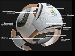 · За контроль и «чувство» мяча отвечает поверхностный слой, материал покрышки. Чем материал более мягкий и упругий, тем эти игровые характеристики лучше. Обычно материалом служит полиуретан. · Для создания идеально круглого мяча, вес и отскок которого соответствуют требованиям FIFA использует для подкладочных слоев эксклюзивный материал, состоящий из смеси полиэстера и хлопка. Благодаря его амортизационным свойствам и структуре, распределяющей ударную нагрузку, мяч мгновенно восстанавливает свою форму после удара. · От сбалансированности мяча зависят такие его важнейшие характеристики, как точность и предсказуемость полета. Самое большое влияние на баланс оказывает камера. В мячах для профессиональных игр камеры проходят многократный технический контроль. Для изготовления камер используется только натуральный латекс, так как этот материал очень эластичен, запоминает «форму» и оптимален по весу. Но достичь идеального баланса невозможно. Мяч не полностью симметричен. Например, есть ниппель. Чтобы уменьшить дисбаланс, на диаметрально противоположной стороне каркаса делают дополнительный шов в виде спирали - масса этого шва уравновешивает массу клапана.