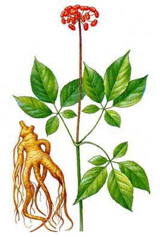 Сырьё, содержащее сапонины, обладает разнообразным действием: тонизирующим (женьшень), успокаивающим (синюха), отхаркивающим (солодка) и т.д. Многолетнее травянистое растение. Стебли одиночные, тонкие высотой до 70 см. Близко к верхушке стебля расположена мутовка из 2-6 листьев, стебель заканчивается цветоносом, несущим соцветие. Листья длинночерешковые, трёх-пятипальчатосложные, листочки ланцетовидные, заострённые, пильчатые по краю. Соцветие – простой зонтик. Цветки мелкие зеленоватые. Плод – красная костянка.