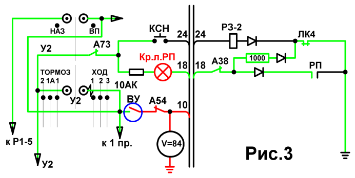 1. Нет напряжения на 10-м поездном проводе. (Рис.1) Причина: К.З. на 10-м проводе, которое вызвало сработку (отключение ) А-56 с возможным перегоранием П1. (Рис.1а)
