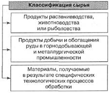 Пути снижения логистических затрат на основе диверсификации производства: · унификация деталей и сборочных единиц; · стандартизация; · осуществление предварительной сборки узлов; · использование деталей, имеющих высокий удельный вес в готовой продукции. Норма времени — научно обоснованные затраты необходимого рабочего времени на выполнение работ в определенных производственных условиях. Партия деталей — количество одинаковых деталей, обрабатываемых на взаимосвязанных рабочих местах с однократной затратой подготовительно-заключительного времени. Оптимальная партия изделий — партия, при которой затраты в расчете на одно изделие минимальны. Материальные ресурсы: материалы, сырье, полуфабрикаты и готовые изделия, используемые на дальнейших стадиях производственного процесса, вспомогательные материалы, производственные материалы, а также комплектующие. Материалы — это ресурсы, потребляемые в процессе производственных операций, например детали для ремонта оборудования. Сырье — первичные материалы, не прошедшие переработки вообще или прошедшие ее в незначительной степени. Классификация сырья приведена на рисунке: