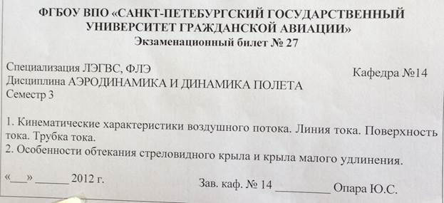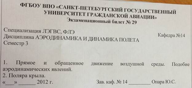 Содержание 1. Главные параметры воздуха. 2. Изменение параметров воздуха с высотой. 3. Международная стандартная атмосфера (МСА). 4.Физические свойства воздуха. 5. Уравнение Бернулли. 6. Геометрические характеристики профиля. 7. Геометрические характеристики крыла. 8. Связанная и скоростная система координат. Угол атаки. Установочный угол. 9. Картина обтекания крыла и распределение давления на крыле. 10. Критический угол атаки и срыв потока с крыла. 11. Полная аэродинамическая сила R, её составляющие. Центр давления. 12. Подъемная сила и лобовое сопротивление. 13. Поляра самолета (планера). Аэродинамическое качество. 14. Механизация крыла. Влияние механизации на аэродинамические характеристики крыла. Работа рулей. Триммер. 15. Силы, действующие на крыло на различных режимах полета. 16. Кривые Жуковского. Понятие о 1-ом и 2-ом режимах полета. 17. Сущность равновесия, устойчивости и управляемости. 18. Понятие о САХ крыла. Центровка ЛА. 19. Аэродинамический фокус. Продольная устойчивость по перегрузке. 20. Устойчивость по скорости. 21. Продольная управляемость. 22. Поперечная и путевая устойчивость. 23. Поперечная и путевая управляемость. 24. Вираж (спираль). 25. Скольжение. 26. Критические режимы полета. 27. Рекомендации по безопасности полетов.