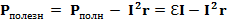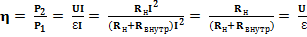 При холостом ходе I = 0 и U = При коротком замыкании I = Iкв = КПД работы источника электроэнергии определяется: