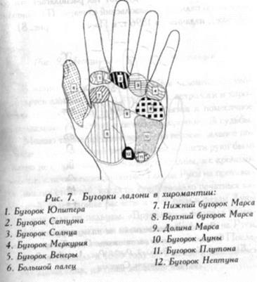 Рис. 5. Френологические поля на черепе человека На основании изучения черепов ископаемых людей продемонстрированы этапы психической эволюции человека. Эти исследования позволяют на основании развития лобных долей мозга, его теменного отдела судить о развитии процессов торможения и, следовательно, преодолении животных инстинктов, а также о развитии абстрактного мышления и появлении членораздельной речи. Среди всех видов гадания астрология и хиромантия были наиболее тесно связаны с зарождающимися научными направлениями и до некоторой степени стимулировали их развитие. Окутанные тайной магических обрядов, они не только остались наиболее популярными до нашего времени, но и послужили основой развития научных методов.