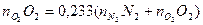 Относительное число молекул азота (к молекулам кислорода) найдем из уравнения баланса массы