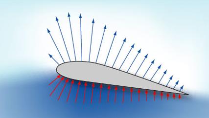 Рис.1 Распределение давления на профиле крыла векторным способом.