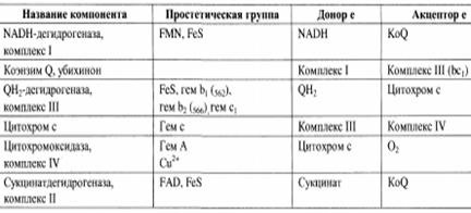 Компоненты митохондриальной цепи переноса электронов