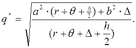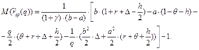 Таким образом, q2min является средневзвешенным величин a 2 и b 2 с весами (r + q + h /2)/(r + q + D + h /2) и D/(r + q + D + h /2) соответственно. Поэтому a 2 £ q2min £ b 2. Другими словами, решение qmin попадает в интервал (a; b). Следовательно, оптимальное значение объема одноразовой поставки q*, максимизирующее ожидаемую рентабельность при случайном спросе, имеющем равномерный закон распределения вероятностей на [ a; b ], определяется равенством