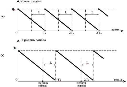 Рис.2.1. График уровней запасов при различных стратегиях: (а) и (б).