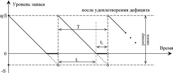 Рис. 6.1. Иллюстрация основных понятий для модели планирования дефицита с его покрытием при очередной поставке.