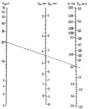 Рисунок 4.6 - Номограмма для определения отверстий диафрагм, устанавливаемых у смесителей