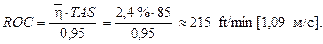 3. Определяем, какую надо выдерживать вертикальную скорость набора высоты, чтобы преодолеть препятствие по курсу (H преп = 30 м) с зазором 50 футов: